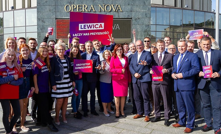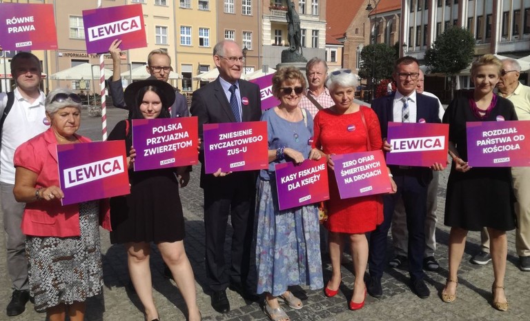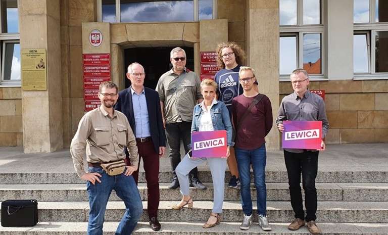 Kandydaci z listy Lewicy w okręgu 4, m.in. Krzysztof Gawkowski, Jan Szopiński, Michał Wysocki,